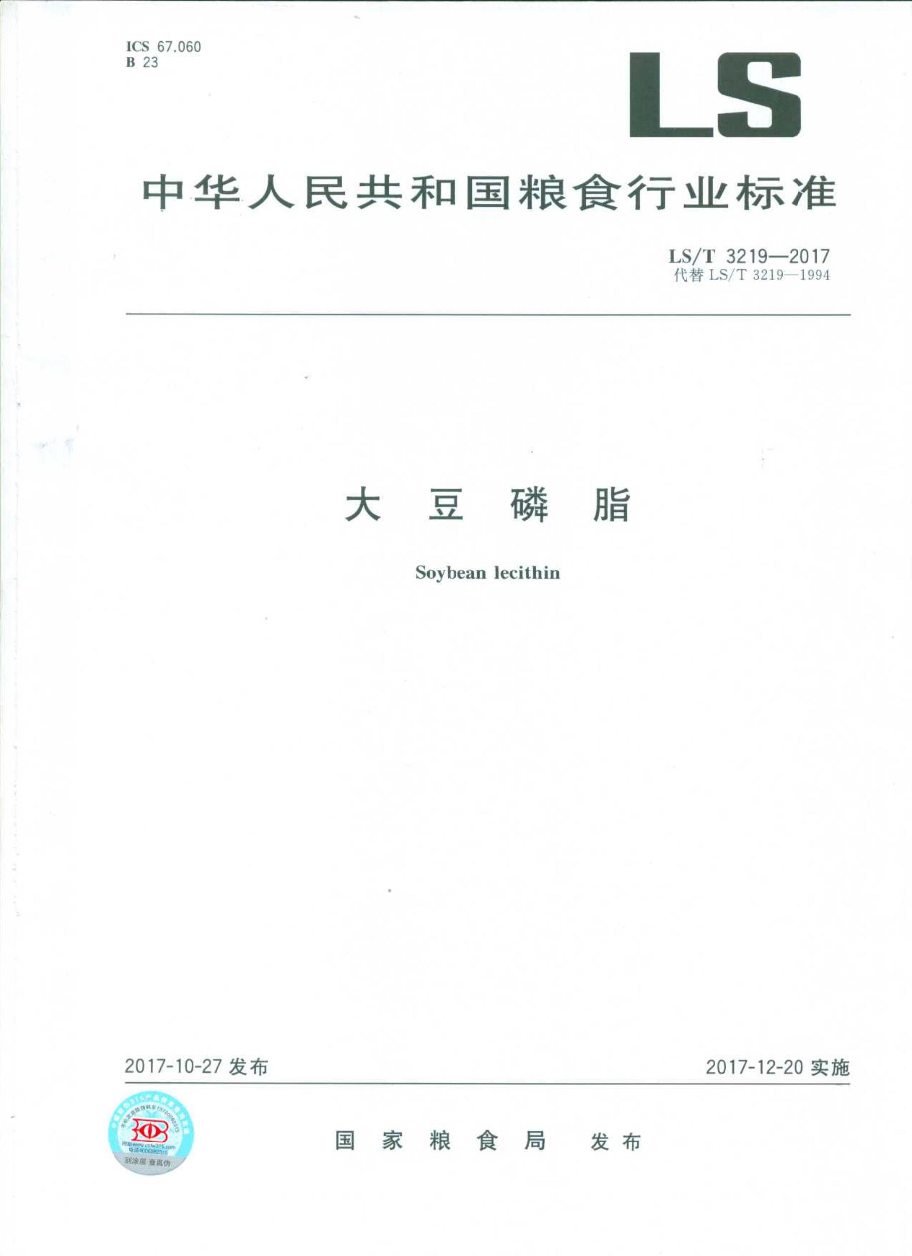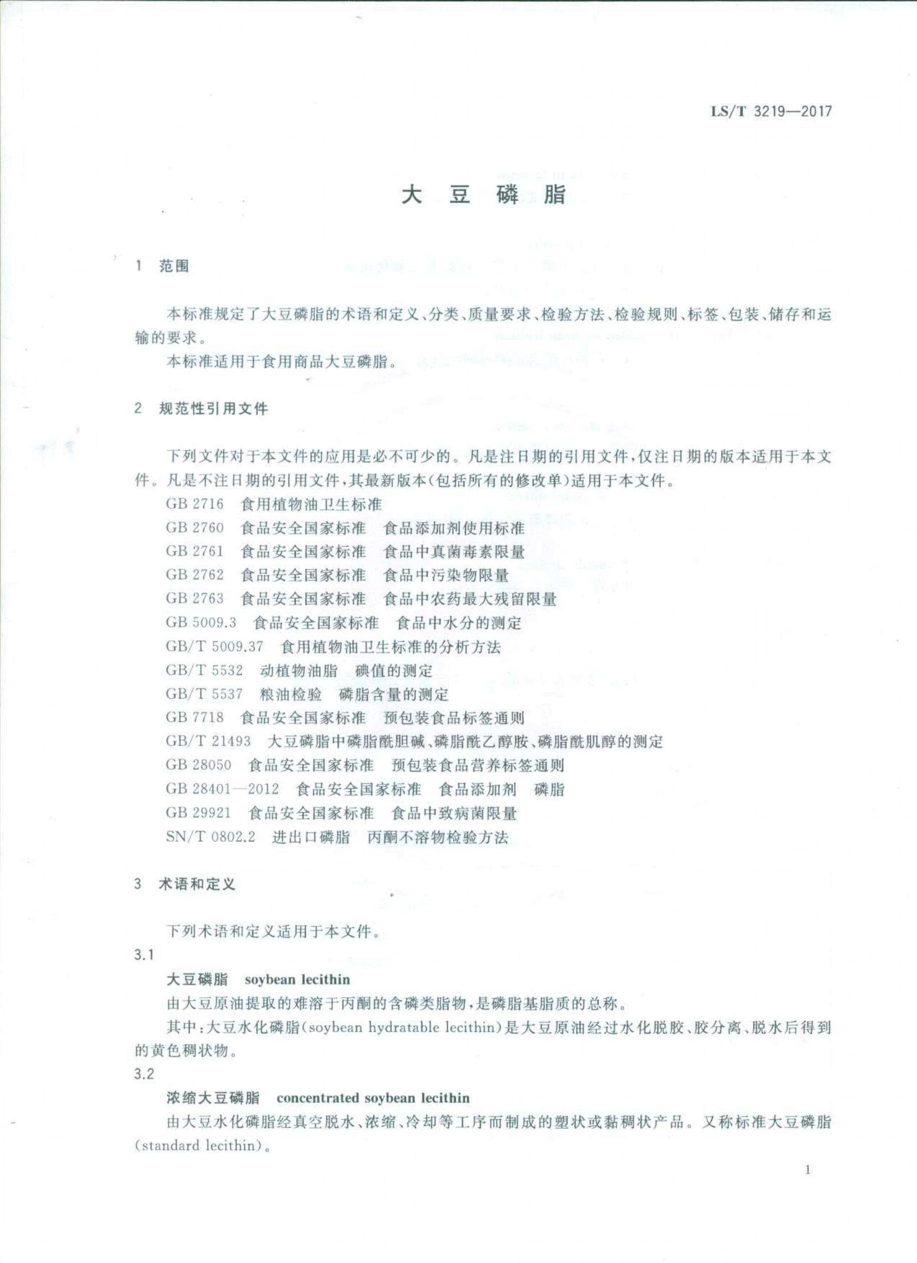 LS/T 3219-2017大豆磷脂
