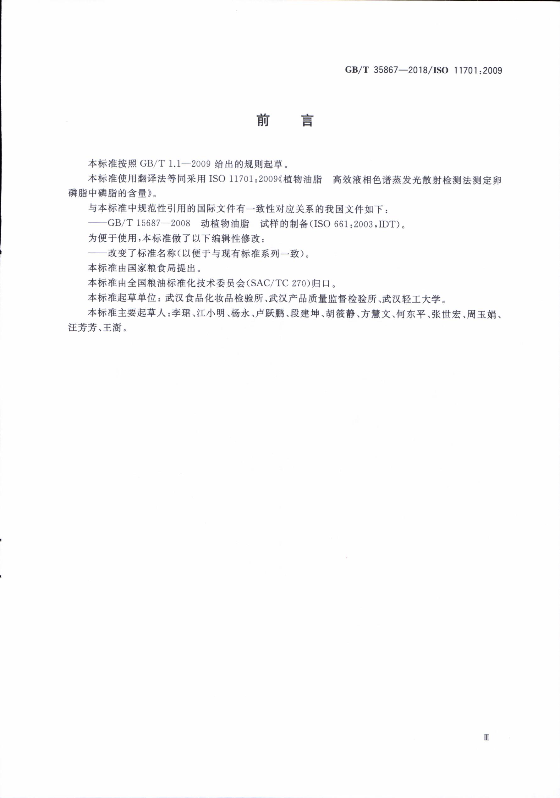 卵磷脂中磷脂含量的測定GB/T 35867-2018